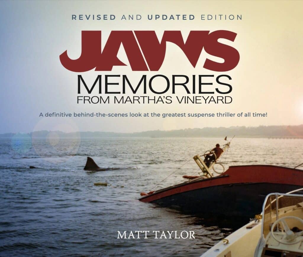 When Matt Taylor’s JAWS: MEMORIES FROM MARTHA’S VINEYARD was first published in 2011, it felt like the last word on one of the most troubled and most successful films of all time. It recounted the turbulent production of Steven Spielberg’s terrifying shark thriller through copious words from the Vineyard residents who assisted the filmmakers as well as a few of the latter, illustrated with a treasure trove of behind-the-scenes photos and other illustrations. This year, just to prove it is possible to improve on perfection, Taylor and Titan Books have issued a “Revised and Updated” edition containing even more memories and images.