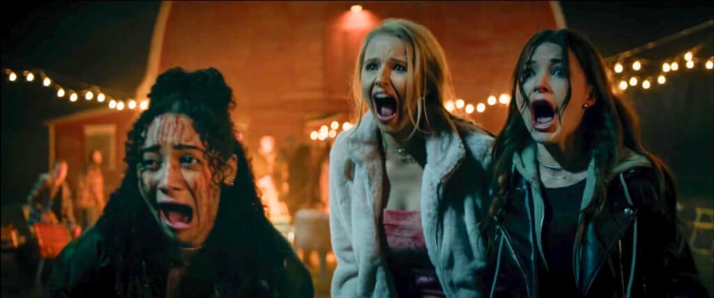 Verity Marks, Cassandra Potenza, and Katie Douglas in Eli Craig’s CLOWN IN A CORNFIELD. Courtesy of RLJE Films & Shudder. An RLJE Films & Shudder Release