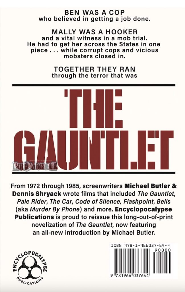 “Michael Butler and Dennis Shryack helped define ’70s and ’80s American filmmaking,” says Encyclopocalypse’s Mark Alan Miller. “For Encyclopocalypse to reissue PALE RIDER, THE GAUNTLET and the cult gem MURDER BY PHONE is an honor, and working with Alan Dean Foster on this edition of PALE RIDER elevates it even further. These books deserve to be treated as the important cinematic artifacts they are.”