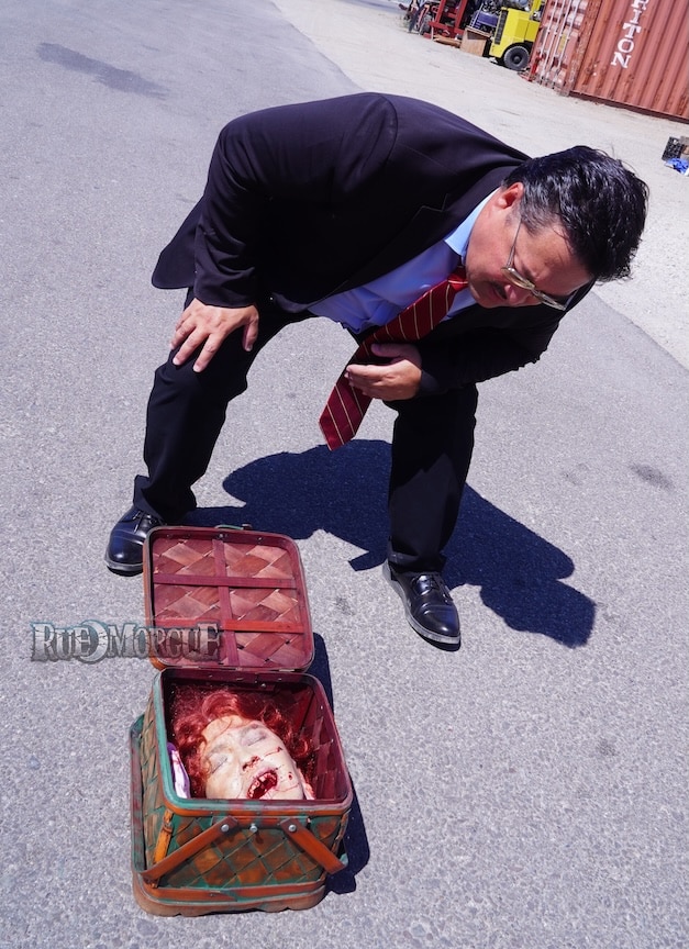 “Every time I work with Chad and his team, he takes true crime to a new level of macabre and splatter!” raves Castro. “This movie is no exception. The level of realism and depravity makes my skin crawl, and I love it.” And Bonzell recalls one gruesome highlight: “As an actor, I knew there was going to be a head in a box that I had to open, with the likeness of victim Exxie LaFaye Wilson. I did not want to see it prior to shooting, as you can only be surprised once. Chad and Joe created such a lifelike severed head of Exxie that it sent me jolting back once I saw it, so the reaction on film is as real as it gets. Moving forward, I will be cautious of opening boxes; that is now something I share with Brad Pitt!”