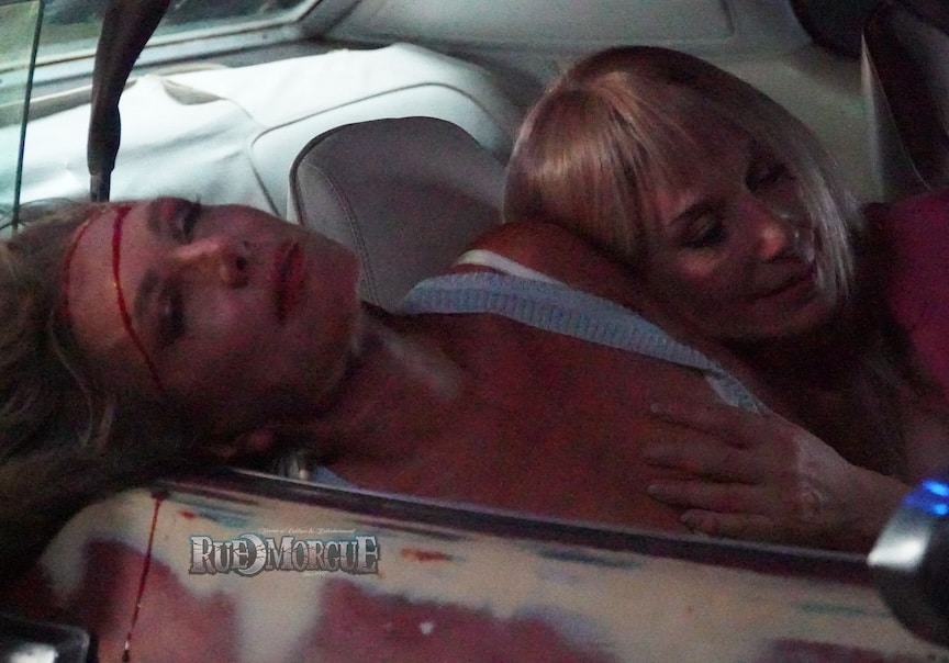 Producer/director Chad Ferrin let us know that he has finished shooting SUNSET STRIP KILLERS (which we first told you about here), and passed on a bunch of first-look pics. Scripted by Chuck Parello (HENRY: PORTRAIT OF A SERIAL KILLER II) and Timothy Croteau, it stars Susan Priver, Max E. Williams, Robert Miano, Brian Foyster, Bella Glanville, Ezra Buzzington, Silvia Spross, Brenda James, Ema Masala, Patty Hayes, Neb Chupin, Marie Solimena, Katie Silverman and Kurt Bonzell; Joe Castro created the makeup effects. The synopsis: “Los Angeles, 1980. Beneath the glittering lights of the Sunset Strip, a horrifying tale of obsession and bloodshed unfolds. Carol Bundy [Priver], a lonely nurse, crosses paths with Doug Clark [Williams], a charming but dangerously unstable man. Drawn into his web of deceit and depravity, Carol’s quiet existence spirals into a nightmare she never imagined.”