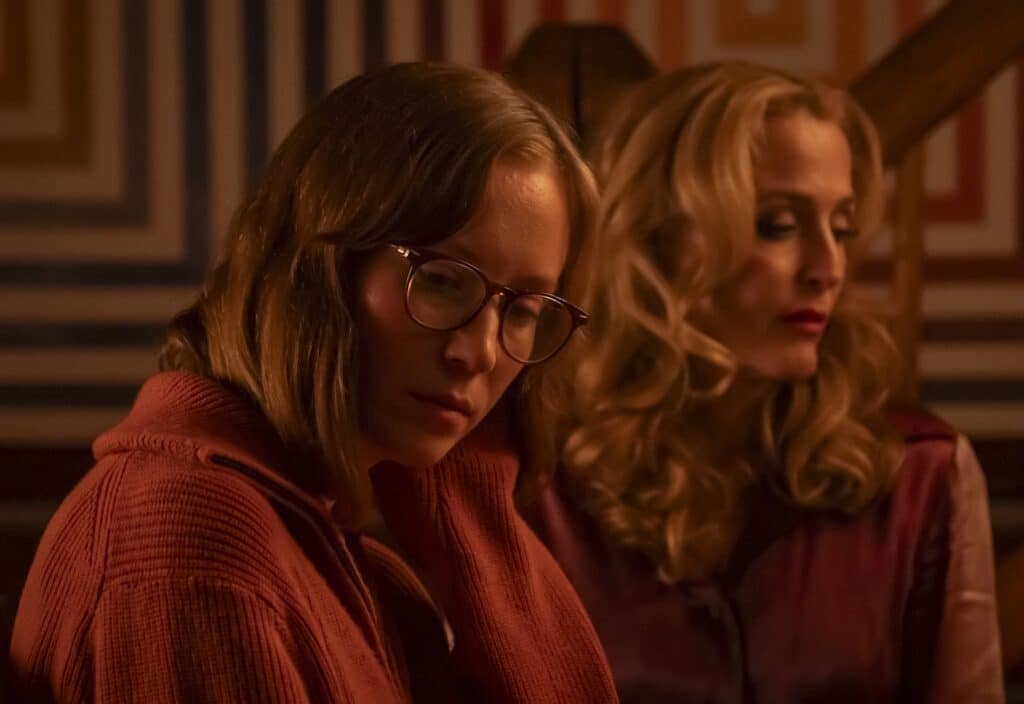 MUBI has announced that it will open TEENAGE SEX AND DEATH AT CAMP MIASMA in U.S. theaters August 7. Written and directed by Jane Schoenbrun, it stars Hannah Einbinder, THE X FILES’ Gillian Anderson, Amanda Fix, Arthur Conti, Eva Victor, Zach Cherry, Sarah Sherman, Patrick Fischler, Dylan Baker, Jasmin Savoy Brown, Quintessa Swindell, Kevin McDonald and Jack Haven. The synopsis: “After years of slapdash sequels and waning fandom, the Camp Miasma slasher franchise is handed over to an enthusiastic young director for resurrection. But when she visits the original movie’s star, a now-reclusive actress shrouded in mystery, the two women fall into a blood-soaked world of desire, fear, and delirium.”