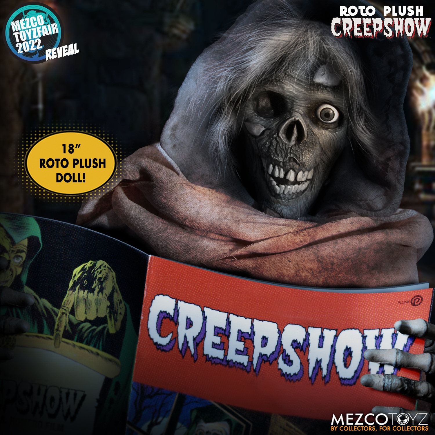 Sticking with the Creepshow theme, Mezco also shared a few pictures of its 18 inch ROTO plush doll of “The Creep” himself. This doll comes with with sculpt hands/head and a soft plush body.