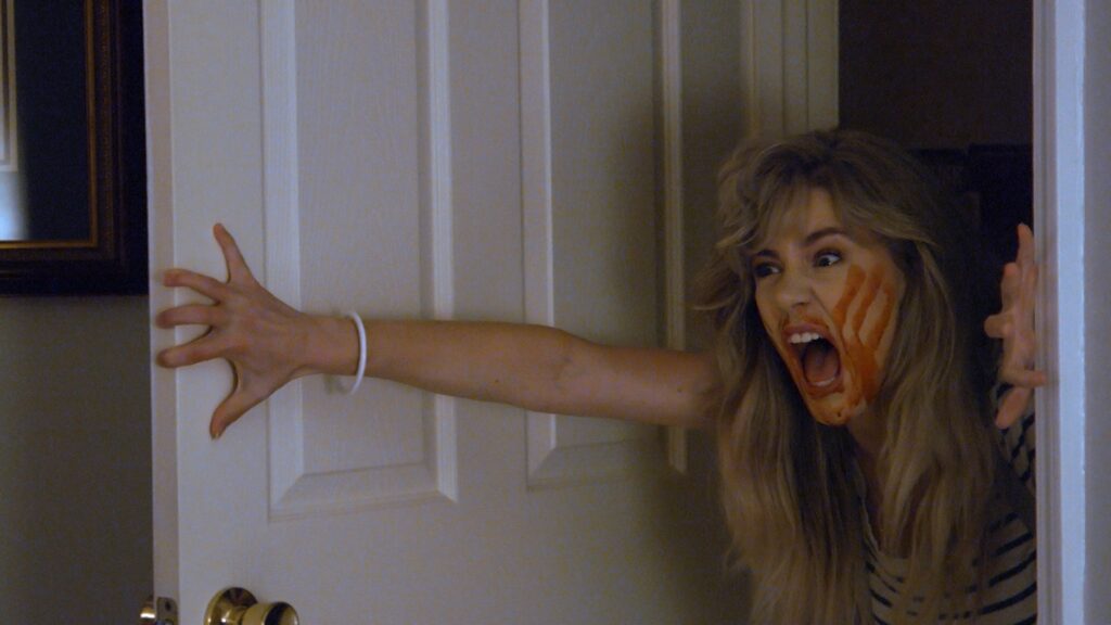 When you want to hit horror fans right in the ’80s nostalgia cortex of the brain, you cast two performers from a beloved entry of a favorite franchise. THE BLOODY MAN features the reunion of Lisa Wilcox and Tuesday Knight – 24 years after appearing together in 1988’s A Nightmare on Elm Street 4: The Dream Master. Add a plethora of nods to ’80s pop culture in the form of movie posters, toys, and home decor, and you’ve settled right into the era of parachute pants and big hair.