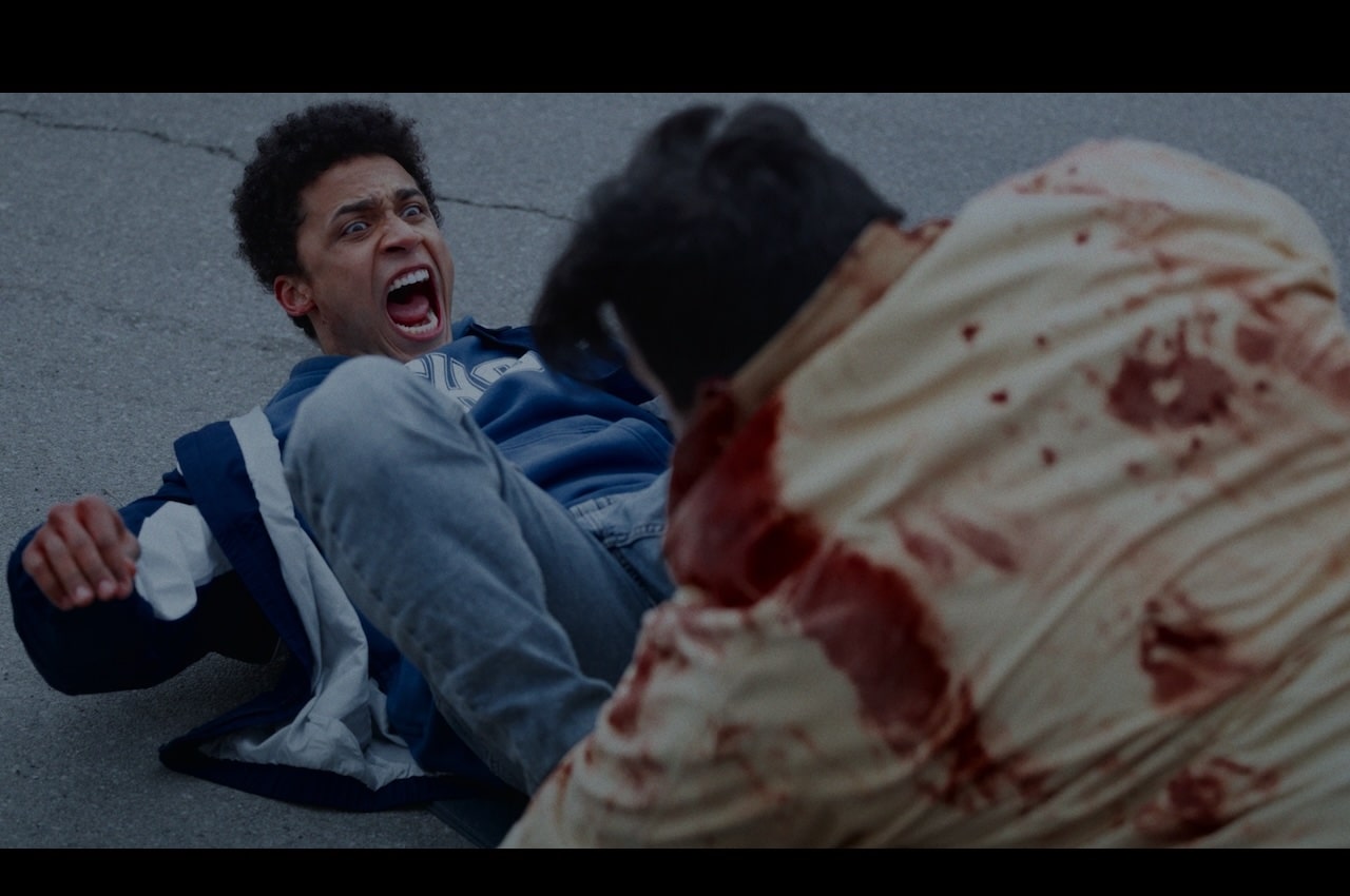 The subsequent de-emphasis on undead attacks in favor of survivor interaction, once to story settles into the high-school setting, might also give some viewers a sense of déjà vu, and that’s just an accident of release scheduling. THIS IS NOT A TEST has the unfortunate timing to come out in the immediate wake of WE BURY THE DEAD and especially 28 YEARS LATER: THE BONE TEMPLE, both of which wreaked wrenching drama from its people dealing with worlds in which humanity seems endangered even among the living. Taken on its own terms, the teen angst in THIS IS NOT A TEST is played with appropriate heart and sensitivity by its young cast, including Corteon Moore as Cary, who quickly and aggressively establishes himself as the leader; Froy Gutierrez (THE STRANGERS—CHAPTER 1) as Rhys, a nicer guy with whom the troubled Sloane tentatively bonds; and Carson MacCormac and Chloe Avakian as twins Trace and Grace, who have an immediate reason not to trust Cary.