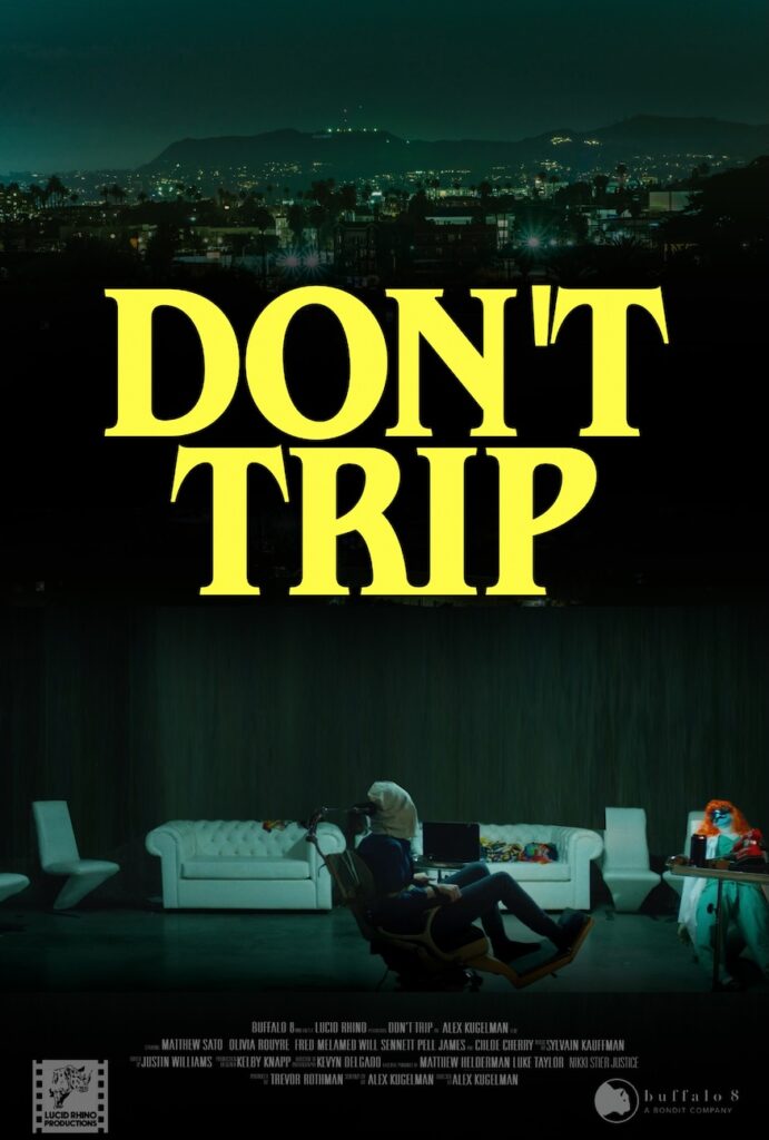 DON’T TRIP, for which we got a couple of exclusive pics (see ’em below), will premiere exclusively on Tubi November 7. Written and directed by Alex Kugelman, it stars Will Sennett, Chloe Cherry, Fred Melamed, Matthew Sato, Pell James and Olivia Rouyre. The synopsis: “After getting fired from his assistant job, a young struggling screenwriter hatches a plan to befriend a powerful producer’s troubled nepo-baby son in order to sell his screenplay. But when the nepo baby learns of his plan, things go awry.”