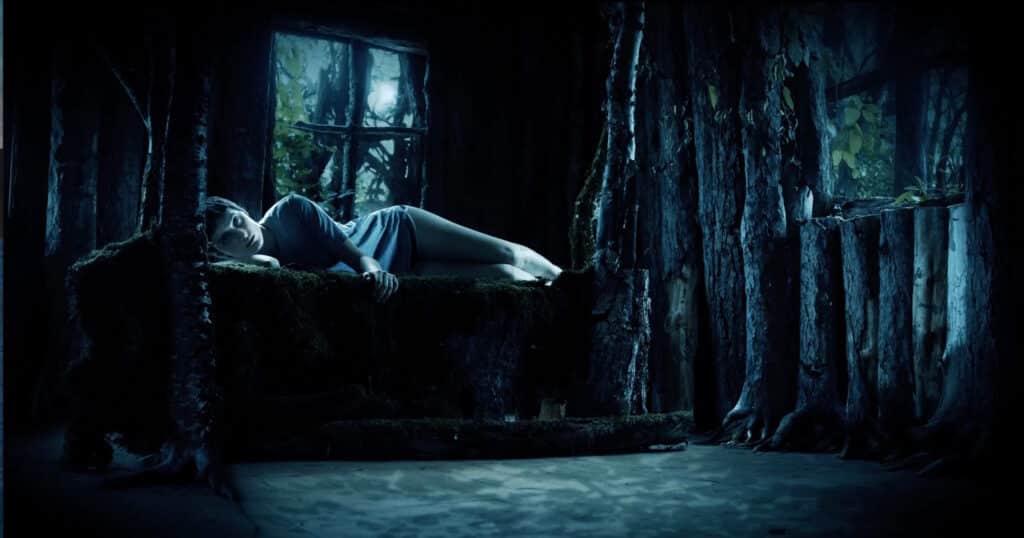 In a place far removed from the isolated woods where Solveig dwells is Mickey (Zelda Adams), a college student in the city who teeters on the edge of death. She has stared down cancer for far too much of her young life. Chemo hasn’t worked, and now, she and her father (John Adams) are heading to a remote location to meet with a woman who claims she can cure Mickey. A mystery woman, offering a natural alternative, trading chemicals for herbs and sanitized hospitals for beds of branches and moss, slabs of bark and thorns.
