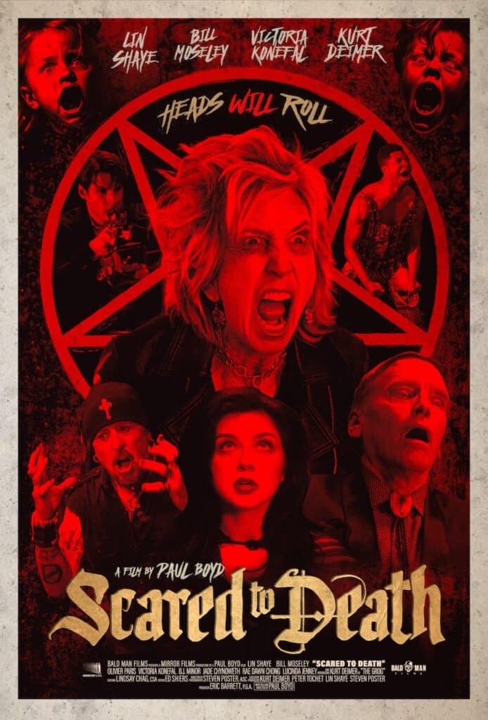 • Atlas Distribution Company releases the horror/comedy SCARED TO DEATH to theaters nationwide on Friday, March 13. Written and directed by Scottish filmmaker Paul Boyd, it stars genre veterans Lin Shaye (also an executive producer) and Bill Moseley, Olivier Paris, Victoria Konefal, B.J. Minor, Jade Chynoweth, Rae Dawn Chong, Lucinda Jenney, and introducing rock and roll frontman Kurt Deimer “as the scene-stealer The Grog.” The synopsis: “In SCARED TO DEATH, a group of filmmakers attend a séance at an abandoned children’s orphanage to do research for a horror movie. Soon, supernatural events begin to manifest, in both horrific and darkly comical fashion. That’s their first mistake.”
