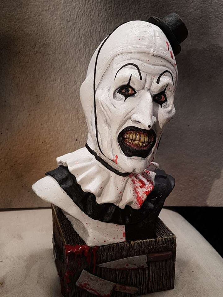 Now Ravenous EFX is giving you a chance to own a little piece of Art (the clown, that is) with their 1/3 scale ART THE CLOWN FAN ART STATUE. Sculpted by Travis Shewchuk, this scary solid resin bust stands 10 inches tall and is completely hand painted and finished.