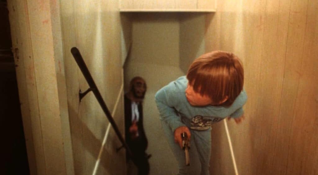 Mainly its use of children in violent situations. You have that incredibly gory finale, where the young George murders two people, one being his father, with an axe, and years later, you have George’s son, CJ, defending his sisters with a handgun and a rifle, going so far as to blow holes in his dad’s chest. There was just something, back then, about seeing kids in this scenario. There had been kids in plenty of horror films before Nightmare, but this was next-level craziness.