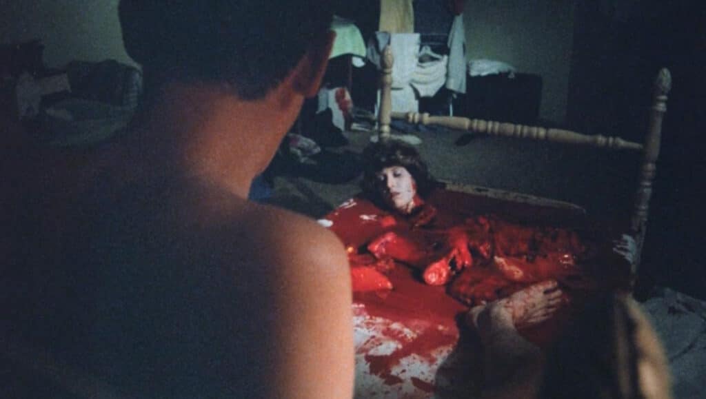 According to interviews with him, Scavolini claims he wasn’t aware of the term “slasher.” I find that hard to believe, but he has said it many times. He claims a story he read about an experimental drug to cure schizophrenia inspired him, yet it’s barely mentioned in the film and not explored. The people who advertised the film on its infamous poster surely tried to sell it as a slasher by comparing it to Friday the 13th and Dawn of the Dead, which, as you know, is not a slasher, yet was incredibly gory for its time.