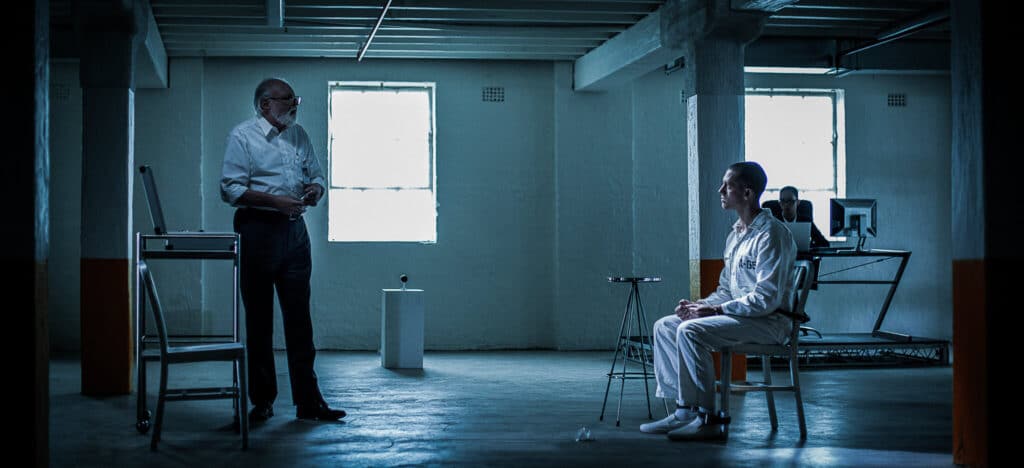 ANIMUS is the story of a fifteen-minute psych evaluation. A psychologist (Chris Hardy) examiness said psychopath (Fenn Leon) to see if he is fit to return to society. Spoiler alert, he definitely isn’t, and makes no argument against that case. One by one, Subject A-652 details the deadly habits of various animals, revealing the horror of nature in a strangely informative, documentary-like manner. The lead performances are solid, and their doctor-patient chemistry is on point and expected for this genre.