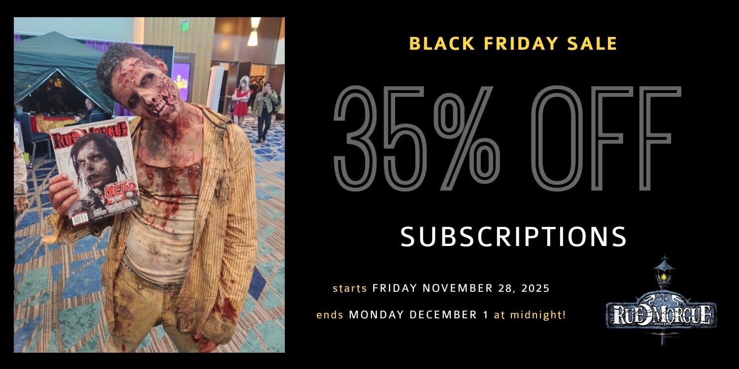 The holiday season is here, and if you’re searching for the perfect gift for the horror fiend in your life (or yourself), look no further! Avoid the hordes of shopping zombies, and subscribe to RUE MORGUE from the comfort of your own crypt.