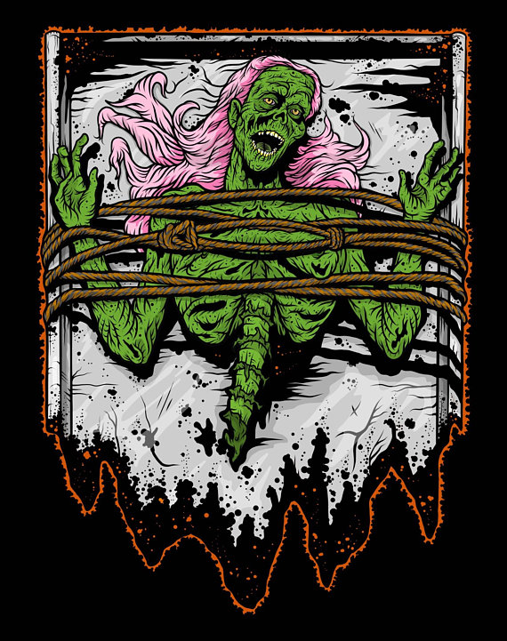 In 2016, Kneehigh Horror shifted gears and started creating original artwork for enamel pins and t-shirts, along with the already popular line of mini standups. Here are a few samples that caught my eye: